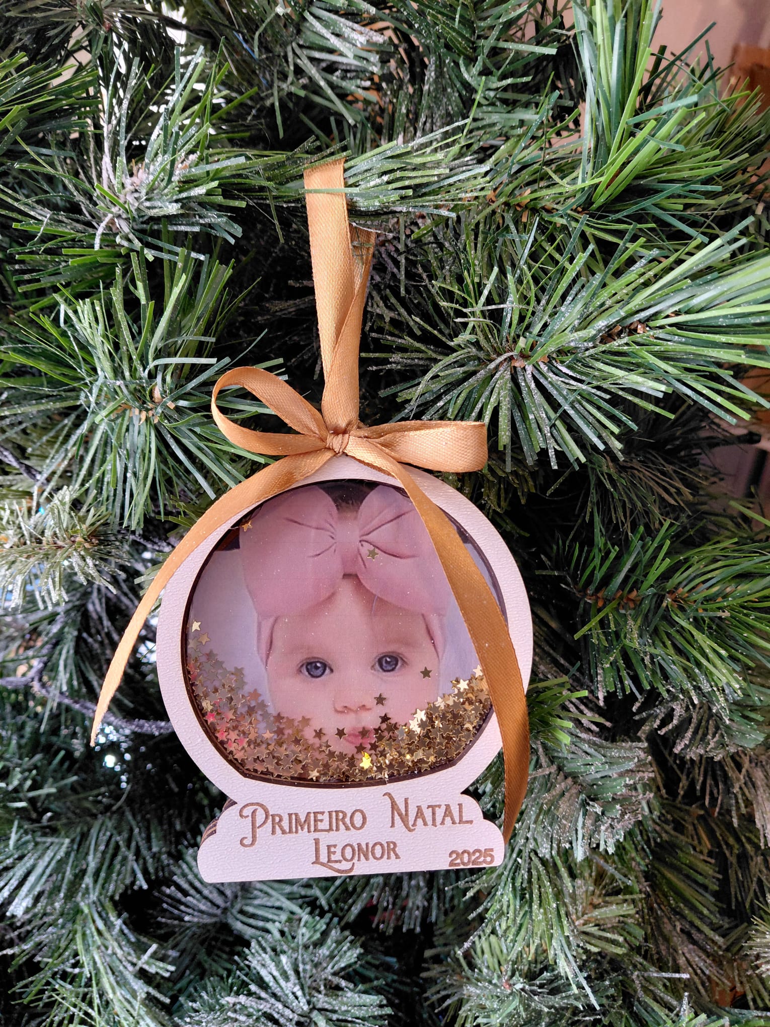 Quer criar um enfeite tão especial quanto este? Personalizamos com a foto, nome e ano do seu bebé.